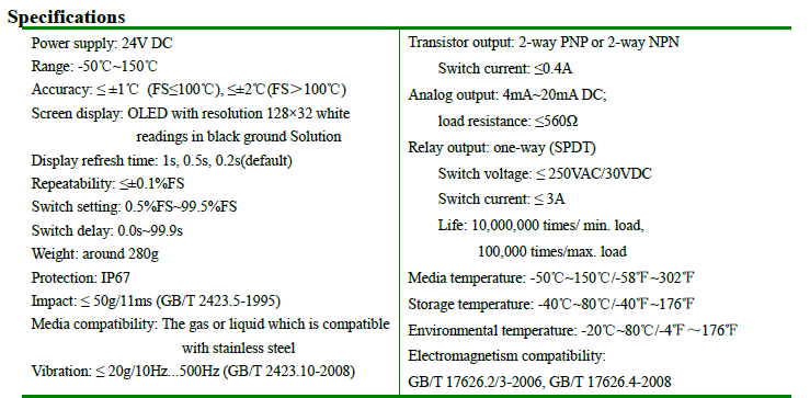 comutação. O produto adota um corpo todo em aço inox, a proteção IP67. O